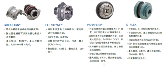 DODGE公司的PARA-FLEX輪胎式彈性聯(lián)軸器特有的內(nèi)襯編織層增強的彈性體結構,采用法蘭組件安裝固定,可以傳遞更大的扭矩。PARA-FLEX系列包括直軸式、錐套式、隔套式以及高速飛速飛輪式等類型。