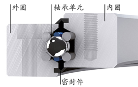 軸承總成由一個(gè)Franke軸承元件、一個(gè)外圈、一個(gè)內(nèi)圈(可根據(jù)要求帶齒)以及唇形密封組成。根據(jù)軸承總成的不同應(yīng)用,軸承元件被設(shè)計(jì)為四點(diǎn)接觸軸承、向心或者推力軸承。如需用于特殊用途,還可提供不同結(jié)構(gòu)的雙列向心推力軸承。
